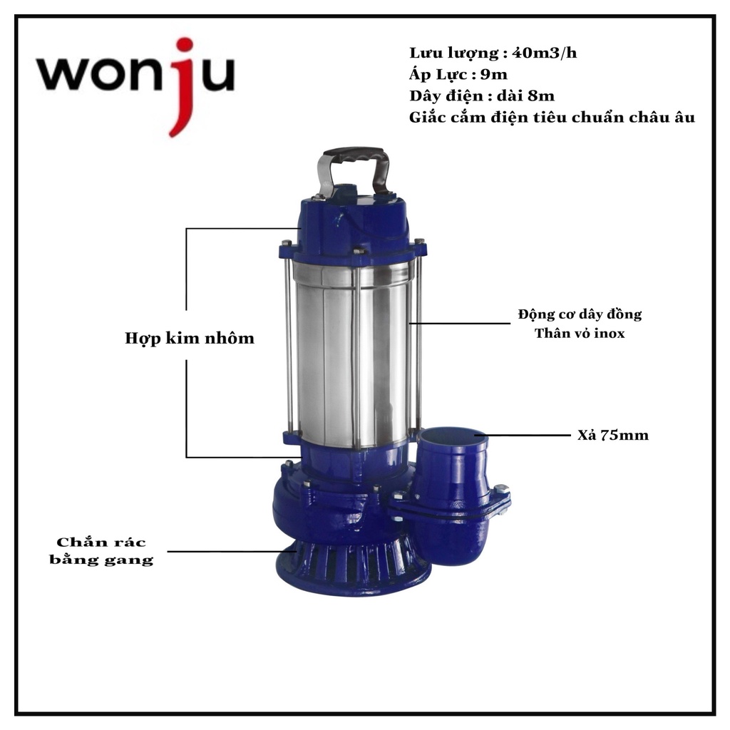 Máy bơm nước thả chìm 1.5kw dây đồng thương hiệu Wonju
