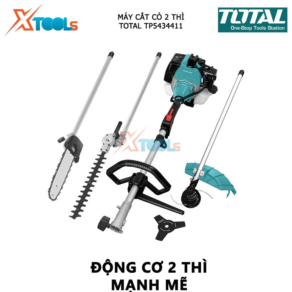 Máy cắt cỏ 2 thì TOTAL TP5434411 là công cụ quen thuộc dùng để cắt các loại cỏ, cây nhỏ mọc hoang trong vườn hay trên sân tập thể dục, sân golf, các khuôn viên trồng cỏ diện tích rộng. Máy cắt cỏ sở hữu thiết kế thông minh, với kiểu dáng nhỏ gọn, hai bánh xe nhỏ giúp việc di chuyển và giữ cân bằng tốt, giúp máy làm việc hiệu quả hơn.
