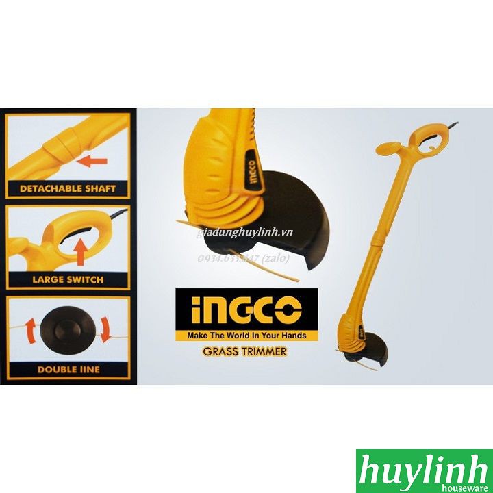 Máy cắt cỏ Ingco GT3501 hoạt động với công suất 350W, với lưỡi cắt đôi với đường kính lưỡi cắt tới 25cm.Huy Linh phân phối và bảo hành chính hãng tại Ingco Việt Nam.