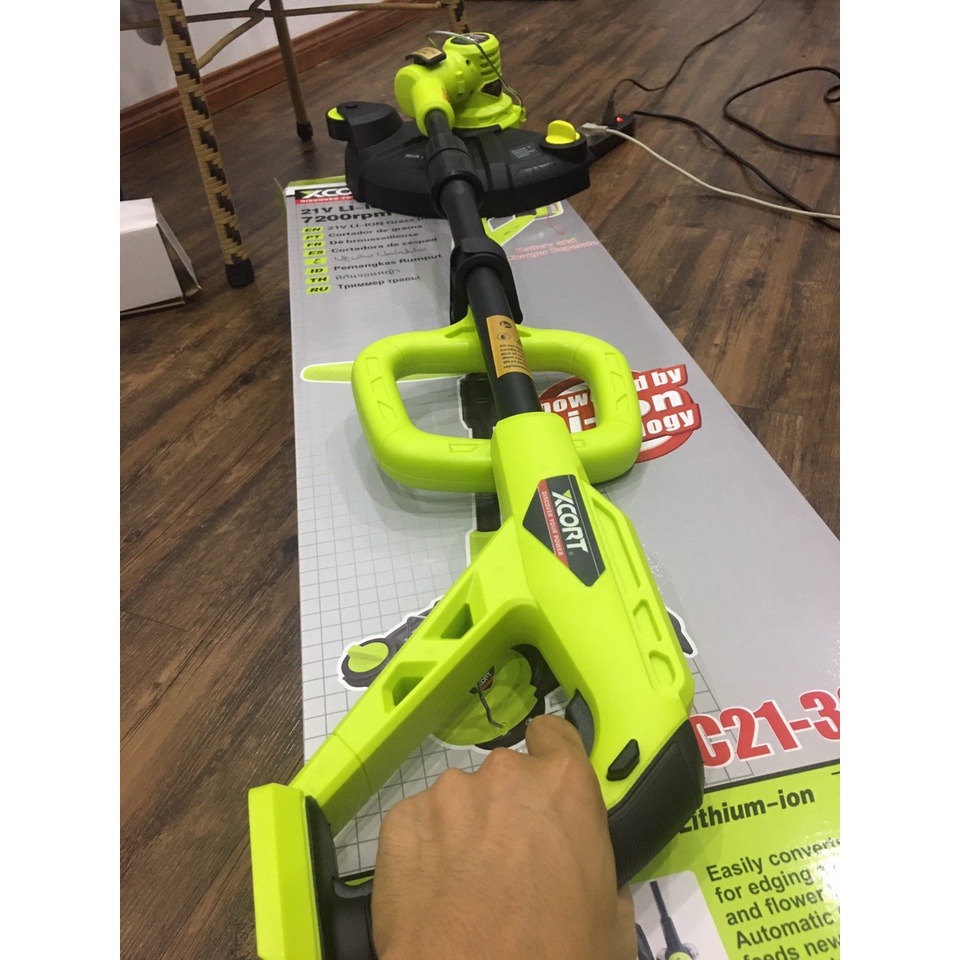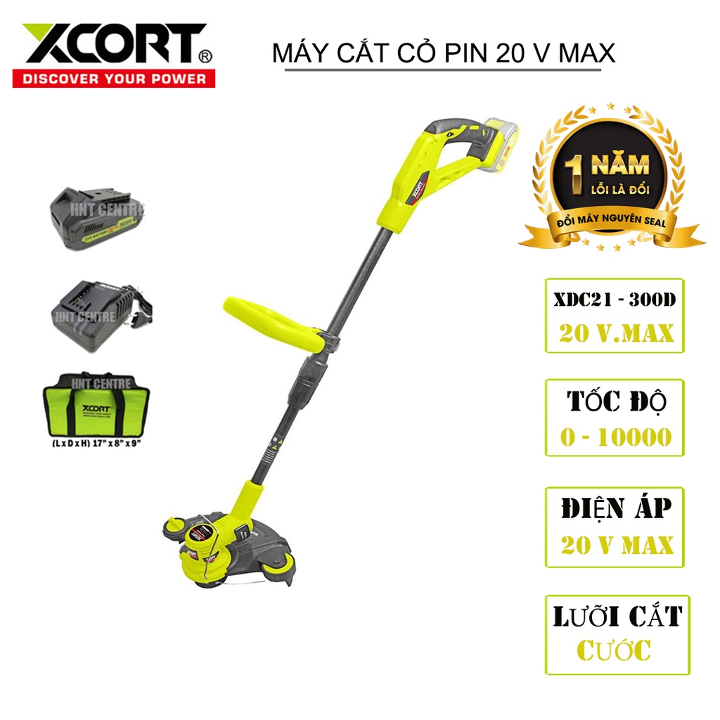 - Máy cắt cỏ chạy pin XCORT XDC21-300D có độ ồn thấp mang tính ứng dụng cao trong các công việc cắt cỏ, phát hoang, làm vườn chuyên nghiệp