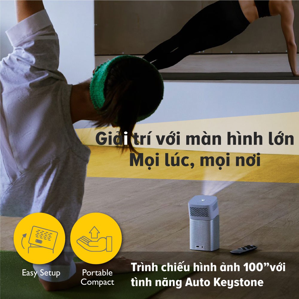 🔹 Đặc tính: Trình chiếu không dây (dành cho iOS / macOS, Android ™, PC), Cổng và đầu đọc USB-C ™, Ống kính 15∘Tiling Lens, Auto Keystone, Pin chạy trong 3 giờ, Loa không dây