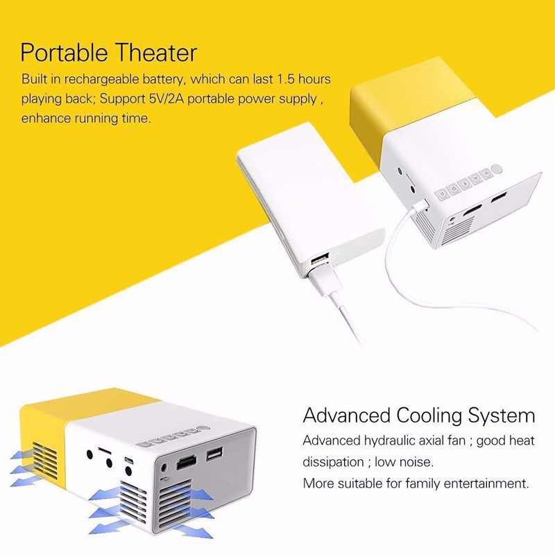 Máy Chiếu Mini Tích Hợp Pin Lithium Giúp Bạn Chủ Động Khi Sử Dụng.