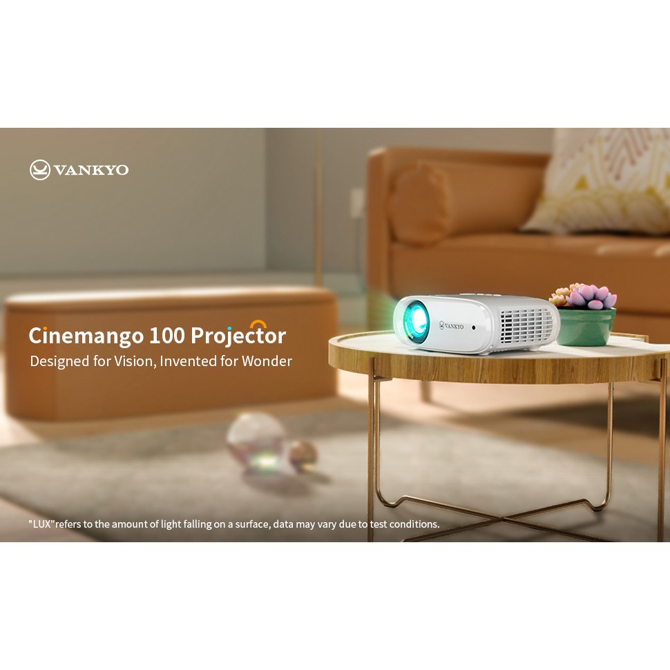 (*) Máy chiếu mini Vankyo Cinemango 100 được thiết kế cho mục đích xem video, xây dựng rạp chiếu tại gia, phòng karaoke, xem bóng đá với kích thước chiếu cực lớn. Trong trường hợp sử dụng cho trình chiếu văn phòng, yêu cầu phòng chiếu có thể điều chỉnh được tới độ sáng phù hợp.