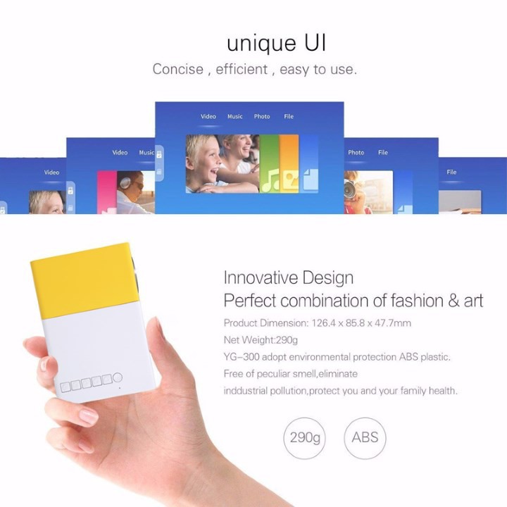 Máy Chiếu Yg-300 Được Thiết Kế Đẹp Mắt, Nhỏ Gọn Tiện Mang Đi Lại.