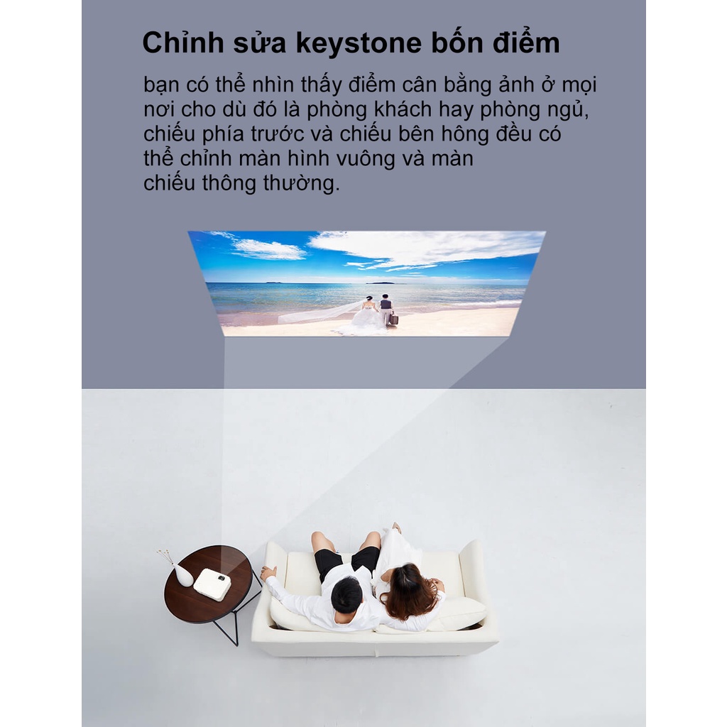 * Keystone: Hình thang thủ công, khoảng cách chiếu: 1,2 ~ 3 m.
