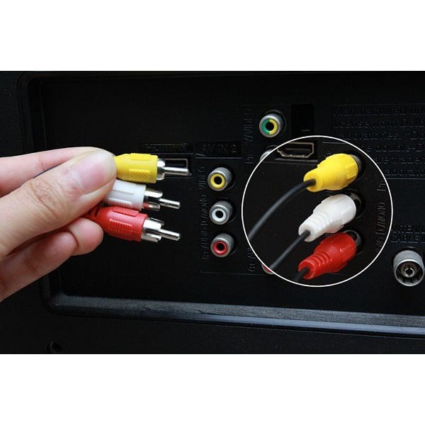 Lưu ý: Máy này kết nối với TV qua cổng av (Vàng, trắng, đỏ), bạn cần kiểm tra xem TV bạn có cổng av này k và hoạt động bình thường. (Tránh tình trạng khiếu nại)