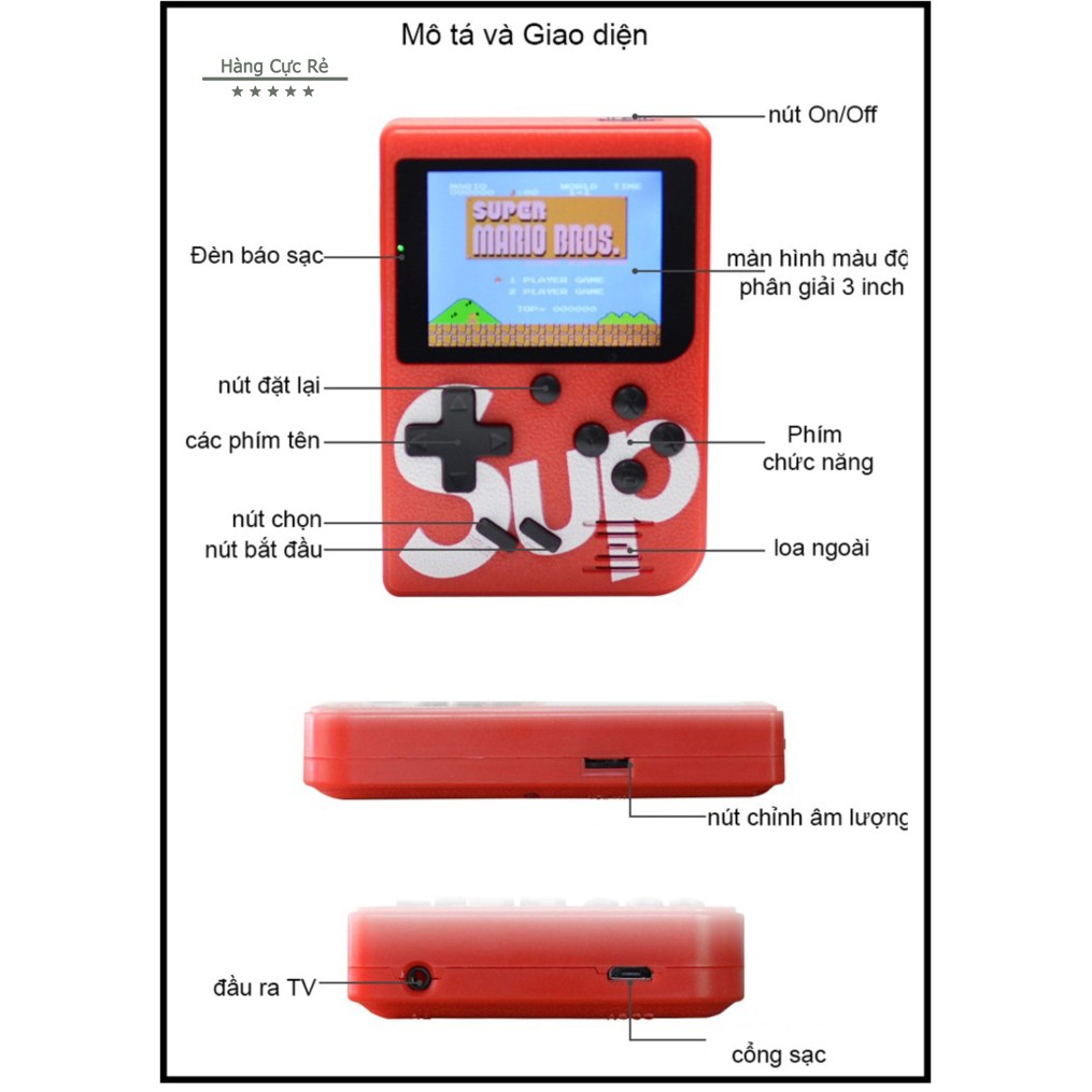 - Tên sản phẩm: Máy chơi game 4 nút cầm tay sup 400 trò in 1
