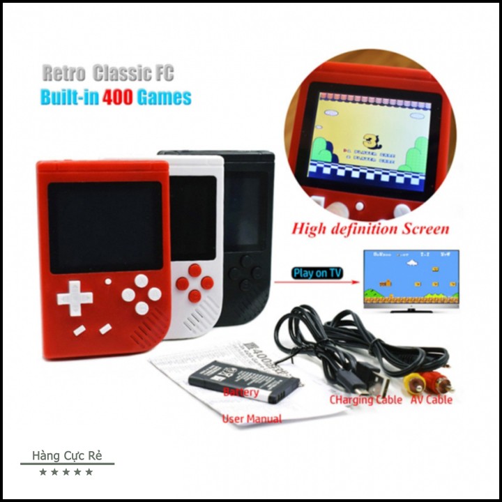 Gaming & Console > Máy chơi game > Khác || Máy chơi game 400 trò đủ loại cực hay – Tặng kèm Jack kết nối tivi – Màn hình siêu thực chơi mọi lúc mọi nơiCòn hàng