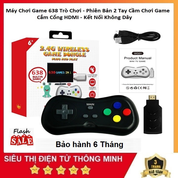 Máy Chơi Game Mini Retro 638 Trò - Kết Nối Không Dây - 2 Người Chơi Cắm Cổng HDMI 2021 - Bảo Hành 6 Tháng