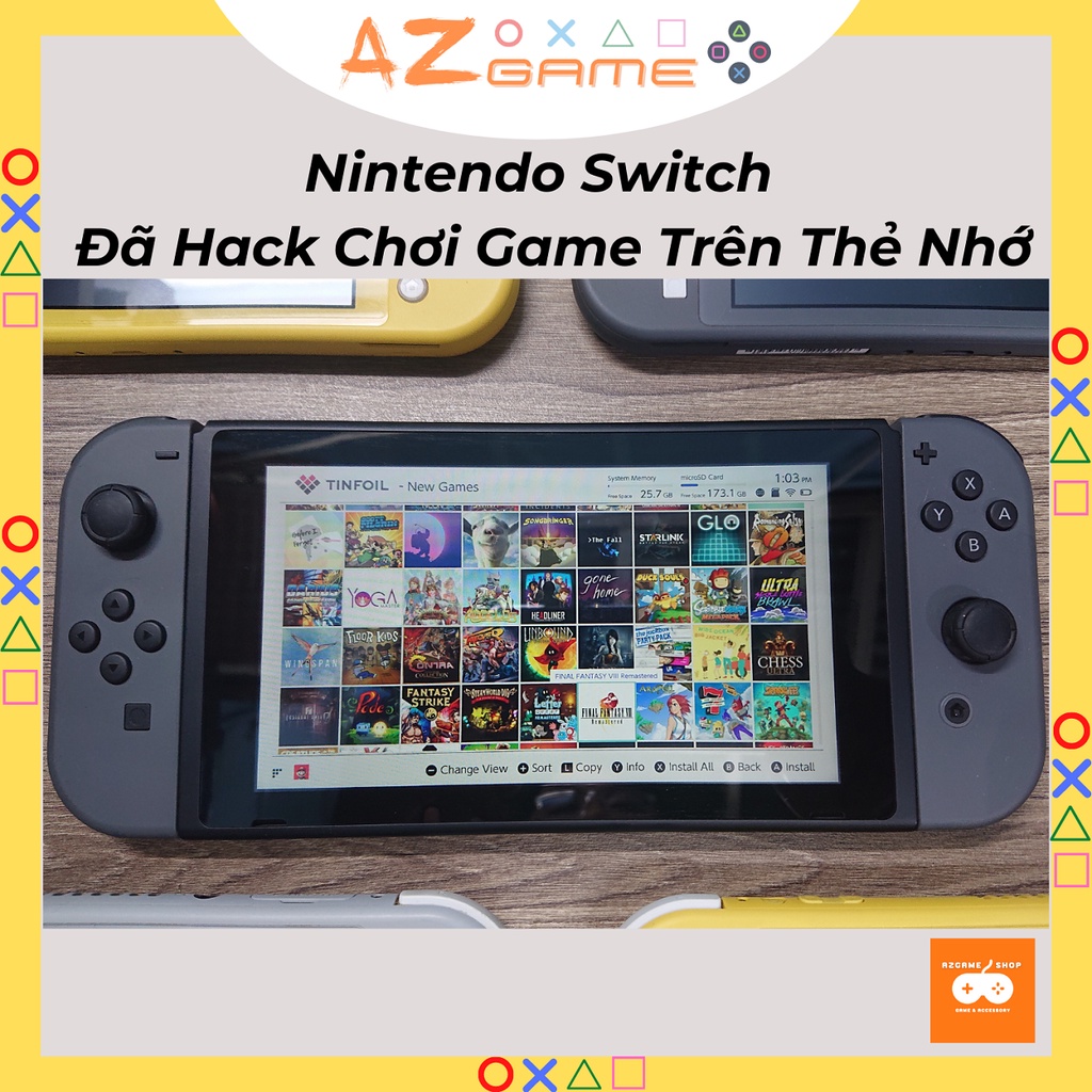 - Máy đã hack atmosphere chơi game trên thẻ nhớ. Ngoài game switch, máy còn chơi được những hệ game cũ.