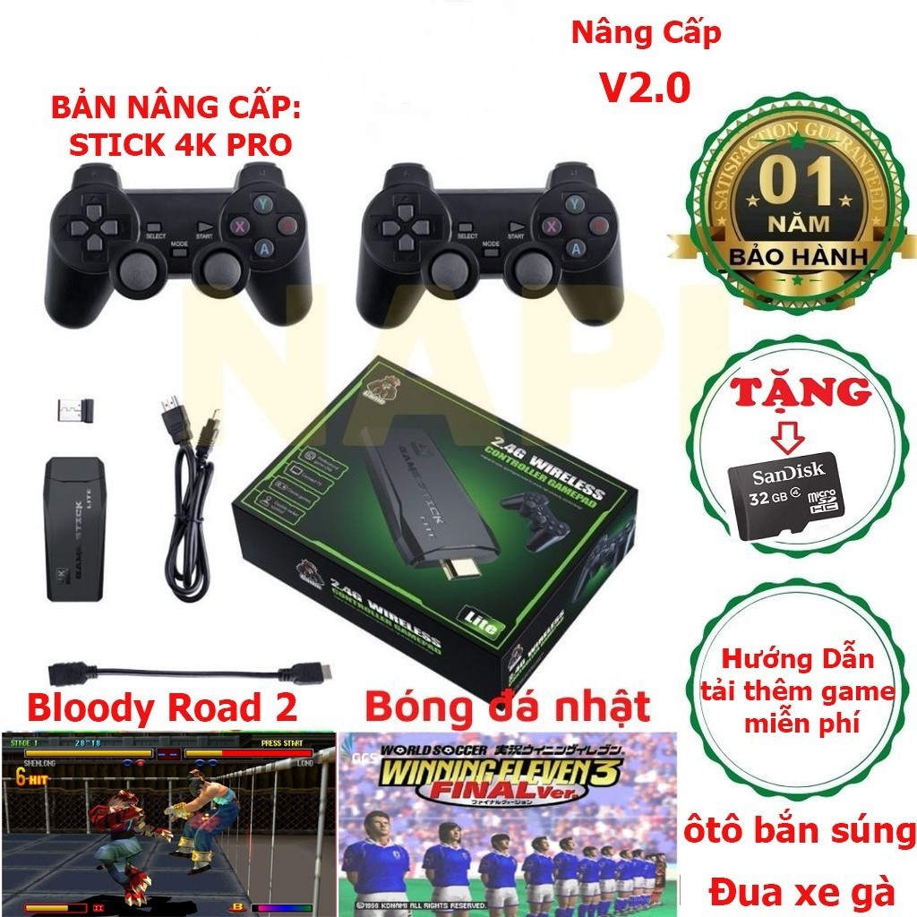 Giới thiệu Máy Chơi Game Stick 4k - HDMI 3500 + 20 trò mới độc quyền, kết nối không dây game 4 nút, 6 nút, PS1/GBA/GBC/GB/NES/SNES.