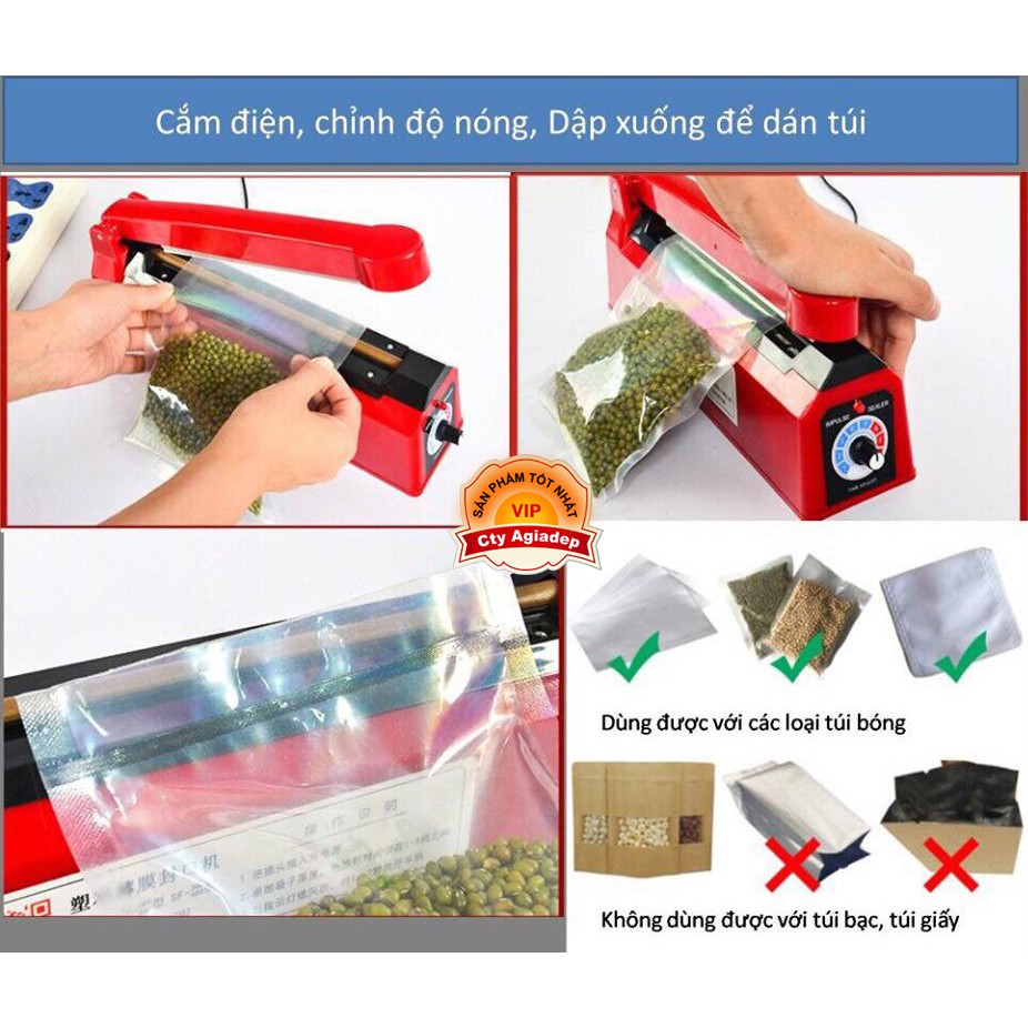 Giới thiệu Máy dán, hàn miệng túi nilon đóng gói thực phẩm dập tay - Dài 20cm mối hàn 2mm - Của Agiadep