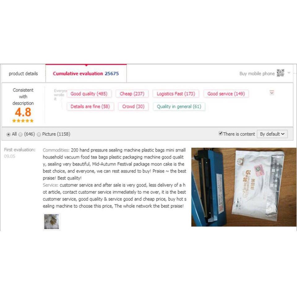Nhà cửa & Đời sống > Dụng cụ nhà bếp > Dụng cụ hút chân không || Máy dán, hàn miệng túi nilon đóng gói thực phẩm dập tay - Dài 20cm mối hàn 2mm - Của AgiadepCòn hàng