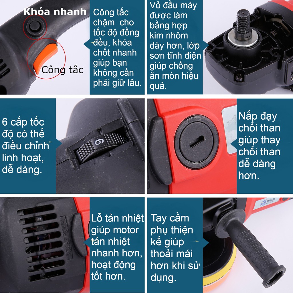 Máy đánh bóng xe hơi là loại máy chuyên dùng nhằm khắc phục những lỗi trên bề mặt sơn bóng của xe như vết xước nhẹ, vết phân chim… ... Điều này sẽ giúp xóa bỏ được các lỗi có trên bề mặt sơn của xe.Máy đánh bóng xe hơi, chà gỗ, đá công suất 1400W 180mm M14 tặng nhiều phụ kiện giúp đánh bóng mọi bề mặt một cách dễ dàng.
