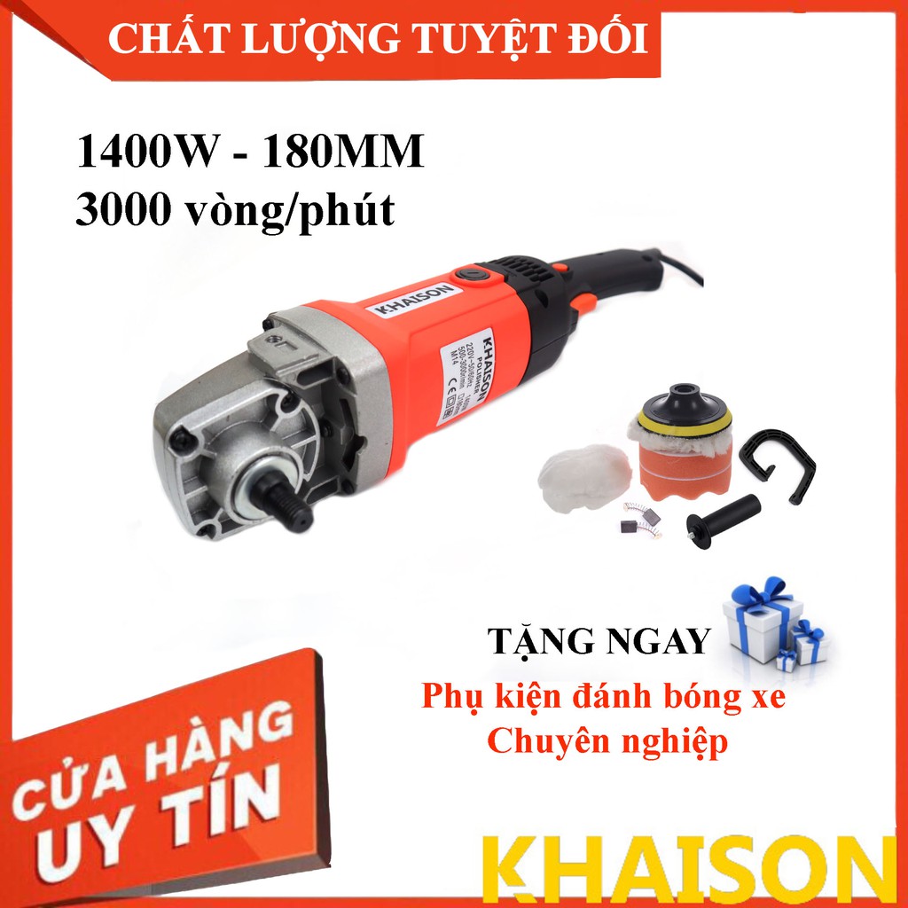 Máy đánh bóng xe hơi, chà gỗ, đá công suất 1400W 180mm M14 KhaiSon tặng nhiều phụ kiện