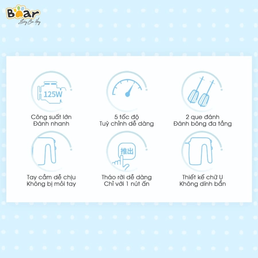 Thiết Bị Điện Gia Dụng > Đồ gia dụng nhà bếp > Máy trộn thực phẩm || Máy đánh trứng Bear DDQ-B02P5 - Bản Tiếng Anh - Hàng chính hãngCòn hàng