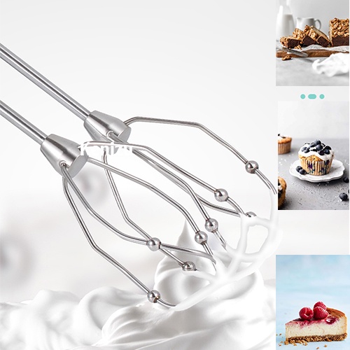 - Máy đánh trứng 500W gồm 2 thanh trộn và 2 thanh đánh trứng được làm bằng thép không gỉ cao cấp, có thể tháo rời và vệ sinh dễ dàng.