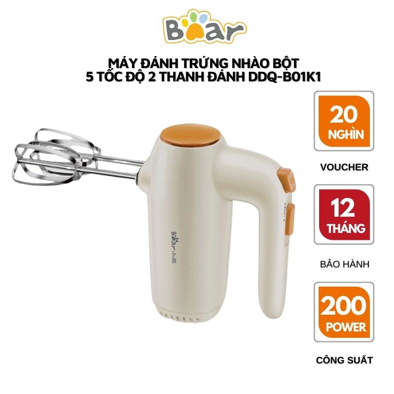 Thiết Bị Điện Gia Dụng > Đồ gia dụng nhà bếp > Máy trộn thực phẩm || Máy đánh trứng cầm tay 5 tốc độ Bear DDQ-B01K1 - hàng Chính Hãng bảo hành 18 Tháng tặng kèm vợt lấy lòng đỏ trứngCòn hàng
