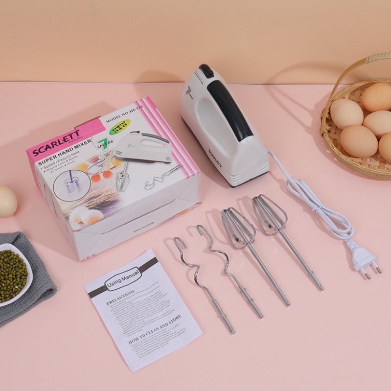 Máy Đánh Trứng Cầm Tay 7 Tốc Độ Công Suất 180WCuộc sống bận rộn, dành thời gian bên gia đình với các món ăn khoái khẩu góp phần làm ấm thêm tình cảm mọi người thân. Đối với người Việt Nam chúng ta những món trứng chiên, bánh Plan, bánh kem hay món bánh truyền thông làm từ bột luôn có mặt trong các bữa ăn, buổi tiệc sinh nhật, tiệc họp mặt. Công việc chuẩn bị nguyên liệu chế biến món ăn đó giờ đây vô cùng tiện dụng, dễ dàng và nhanh chóng với Máy Đánh Trứng 7 Tốc Độ, Thiết kế nhỏ gọn bạn không phải vất vả nhào bột, trộn trứng, rất tiết kiệm thời gian và điện năng.