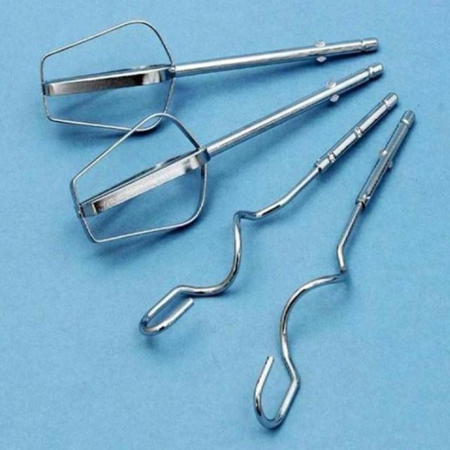 Máy trang bị 4 que , 2 que trộn và 2 que mốc nhào (bột lỏng) làm bằng inox không gỉ cao cấp, đảm bảo chất lượng, vệ sinh cho hỗn hợp trứng, kem, bột. Bộ dụng cụ hữu hiệu dùng cho các chức năng đánh trứng, và các loại thực phẩm khác