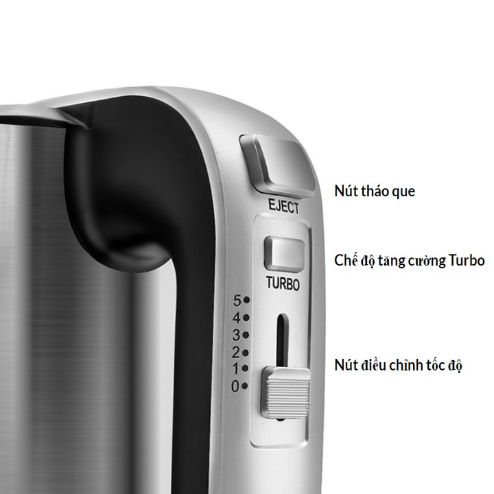 Máy đánh trứng cầm tay JIASHI HAEGER 500W làm kem, trộn bột trong 30S có 5 tốc độ điều chỉnh chuyên dụng MDT01
