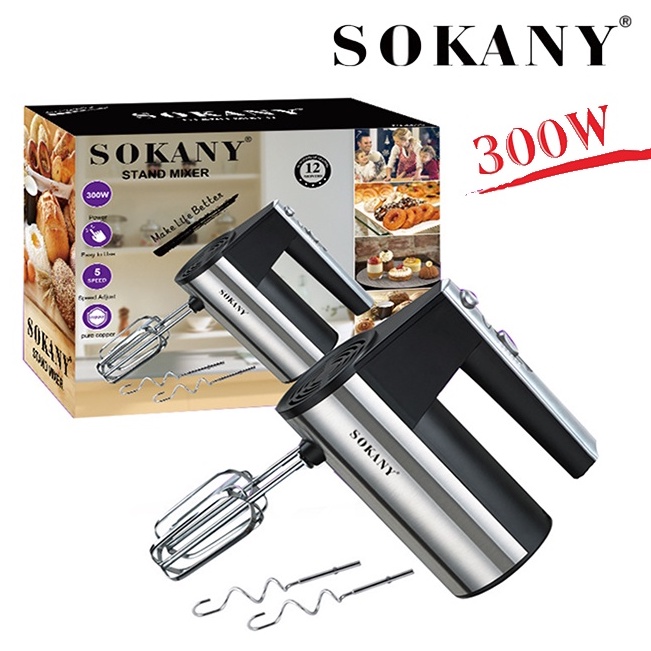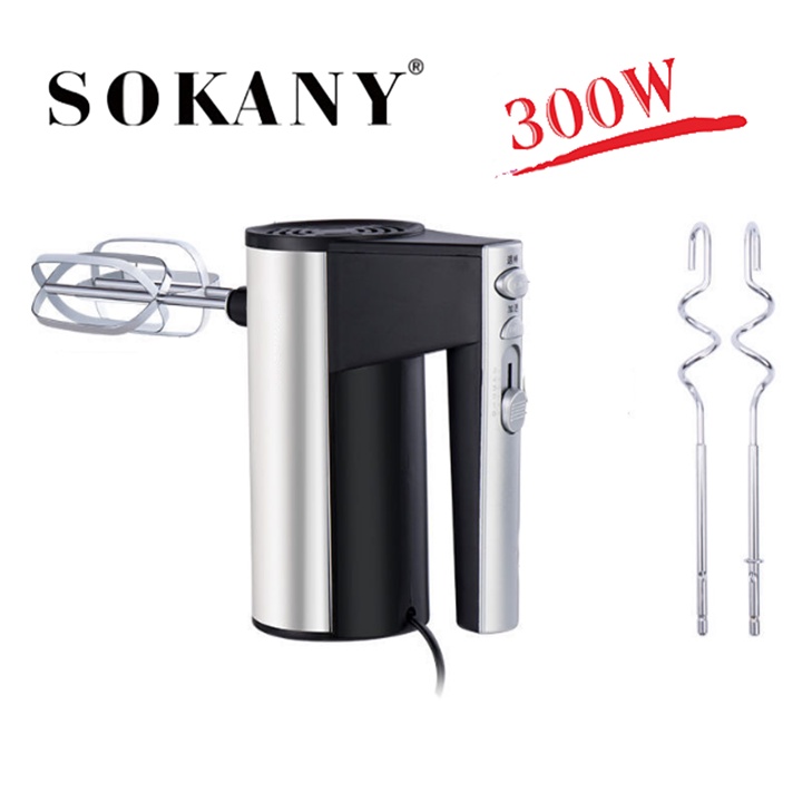- Máy đánh trứng để bàn Sokany có 2 que đánh trứng, 2 thanh trộn ( đánh bông ) bằng Inox không gây rỉ sét, dùng để đánh kem, đánh trứng, nhào bột và các loại thực phẩm khác đảm bảo chất lượng, vệ sinh.