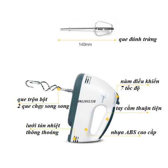 - Máy Đánh Trứng Cầm Tay với 7 tốc độ đánh với công suất cực mạnh lên đến 180W