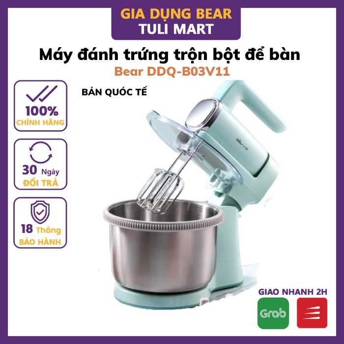 Thiết Bị Điện Gia Dụng > Đồ gia dụng nhà bếp > Máy trộn thực phẩm || Máy đánh trứng cầm tay mini để bàn Bear DDQ-B03V1_Công suất 300W_Dung tích 4L_Máy Trộn Bột_Đánh Kem Đa Năng_BH 18 thCòn hàng