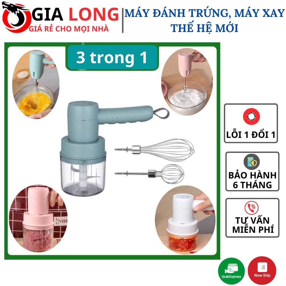 Máy Đánh Trứng Cầm Tay Mini Thế Hệ Mới Kiêm Máy Xay Thịt, Xay Tỏi Ớt, Sản phẩm 3 Trong 1 Siêu Tiện Lợi
