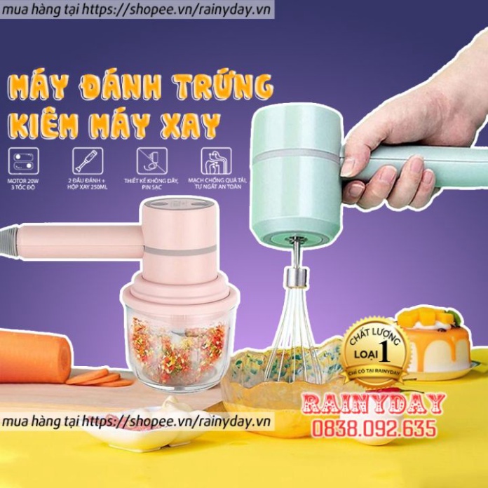 Máy đánh trứng cầm tay mini kiêm máy xay thịt đa năng sạc tích điện xay tỏi ớt, rau củ đa năng