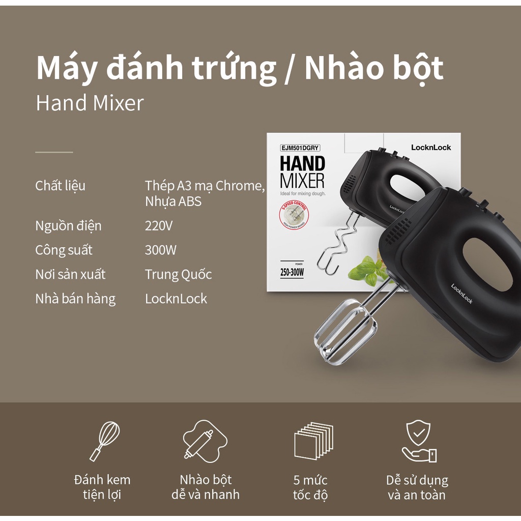 Máy Đánh Trứng Lock&Lock Hand Mixer EJM501DGRY 250-300W----------------------
