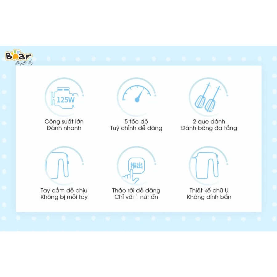 Giới thiệu Máy đánh trứng mini cầm tay Bear DDQ-B02P5, máy đánh kem trứng trộn bột cầm tay mini - tích hợp 5 chế độ - BH 18 tháng