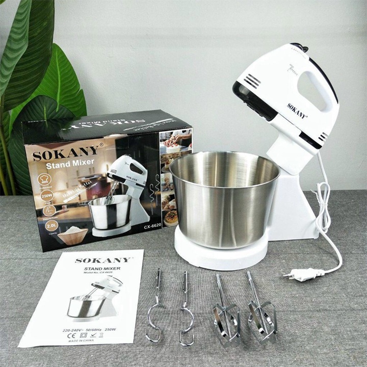 Máy đánh trứng, nhào bột để bàn Sokany 6620 công suất 250W chậu 2 lít hoạt động mạnh mẽ với 7 tốc độ cho khả năng thực hiện nhiều chức năng như nhào bột, đánh kem, đánh trứng và các loại thực phẩm khác. Nhờ đó, việc chế biến những chiếc bánh thơm ngon tại nhà sẽ trở nên đơn giản và tiện lợi hơn rất nhiều.