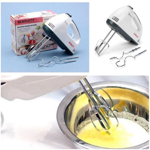 Thiết Bị Điện Gia Dụng > Đồ gia dụng nhà bếp > Máy trộn thực phẩm || Máy đánh trứng Scarlett 4 món - máy đánh trứng cầm tay 7 cấp độ 180W cao cấpCòn hàng