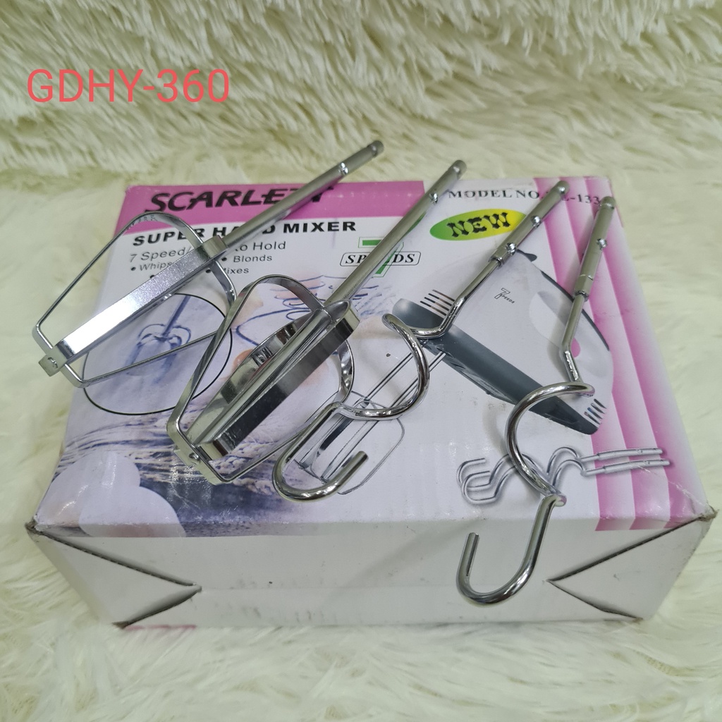 🌸 MÁY ĐÁNH TRỨNG SCARLETT HE133-180W🍀 Máy đánh trứng cầm tay 7 tốc độ với ưu điểm nhẹ nhàng, kiểu dáng đẹp, giúp khâu làm bánh nhanh chóng tức thì, các sản phẩm máy đánh bột, đánh trứng cầm tay hiện đại đã giúp các bà nội trợ bớt lo lắng nhiều về khâu đánh bột, trứng sao cho đều và mịn và không bị mỏi tay.