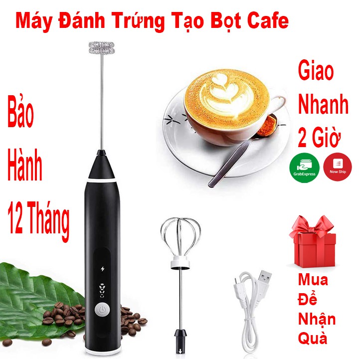 Máy đánh trứng tạo bọt cafe mini 2 trong 1 với 3 chế độ dùng pin sạc USB cao cấp