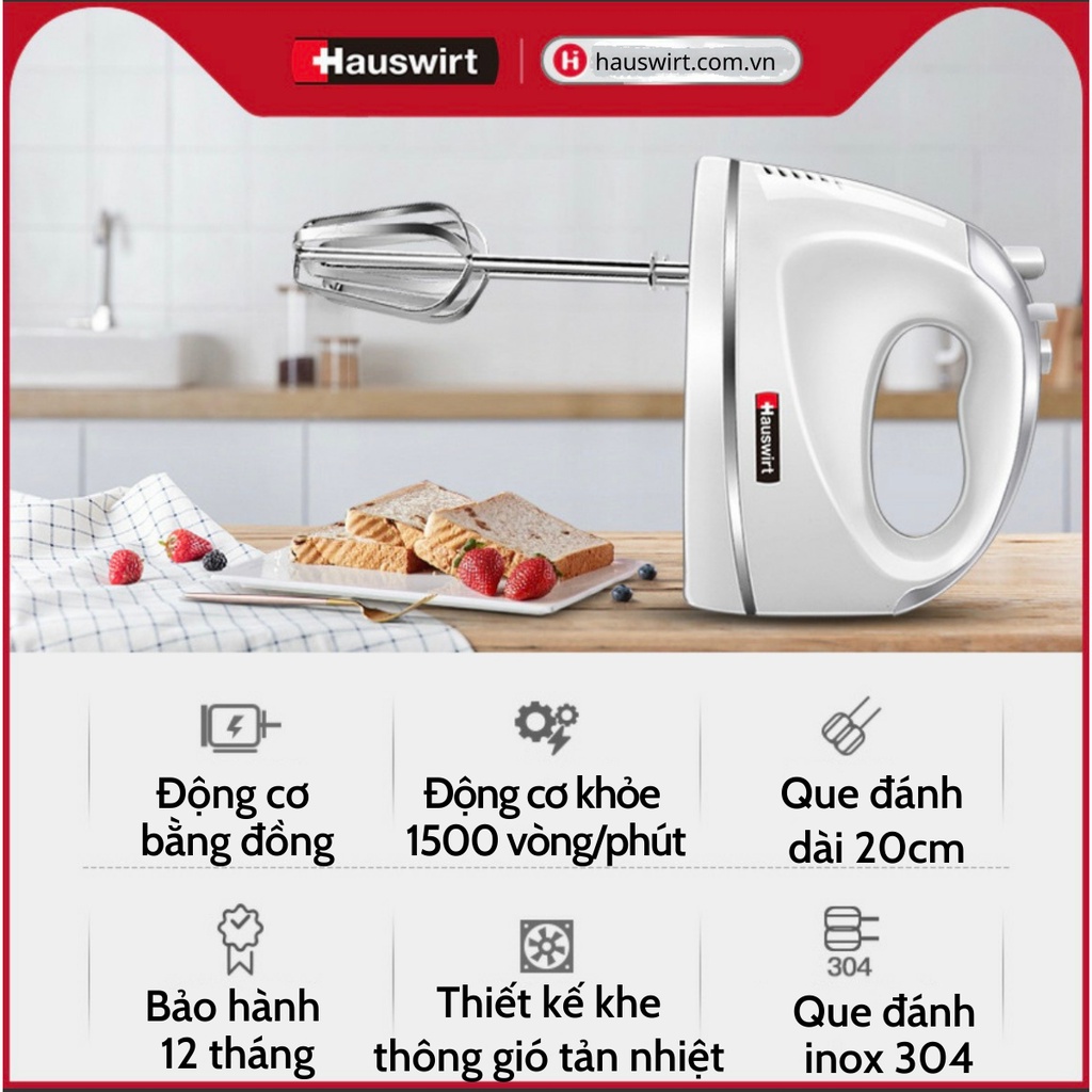 Thiết Bị Điện Gia Dụng > Đồ gia dụng nhà bếp > Máy trộn thực phẩm || Máy đánh trứng trộn bột cầm tay Hauswirt HM330 công suất 300W (5 tốc độ đánh) có que đánh trứng, que nhồi bộtCòn hàng
