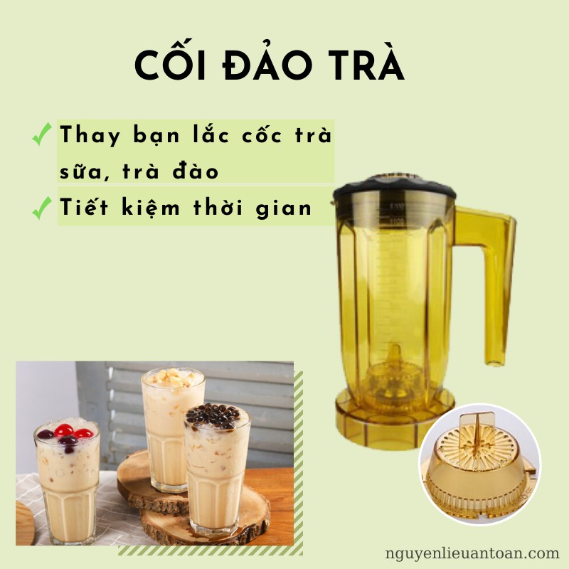 Cối bình được làm từ nhựa không chứa chất độc hại PBA dày 4mm, an toàn với nước nóng và thực phẩm. Gắn động cơ với đế cối và 4 đệm cao su chống rung, giúp máy không bị rung lắc khi đảo trà.