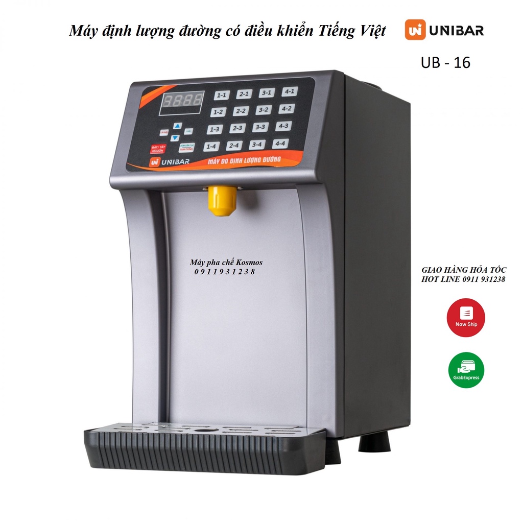 Máy đo định lượng đường Unibar UB-16 là thiết bị dùng để đong lượng đường nước thông qua cơ chế được cài đặt sẵn trong máy. Đây là sản phẩm không thể thiếu tại các quán trà sữa, cà phê, giải khát,…bởi máy giúp rút ngắn thời gian pha chế, cho ra lượng đường chính xác, từ đó giúp cho từng ly đồ uống luôn giữ được chất lượng tốt nhờ pha chế đúng công thức.Cài đặt thông minh