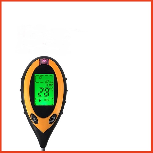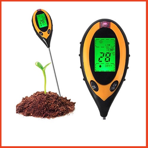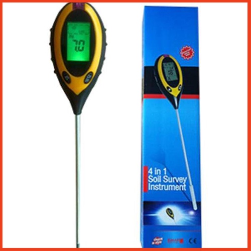 Máy đo độ PH đất 4 trong 1(PH, độ ẩm, ánh sáng, nhiệt độ) hay gọi là Dụng cụ đo PH 4 trong 1 đồng hồ hiển thị dạng điện tử, đo độ ẩm của đất, đo quang thông ánh sáng, đo nhiệt độ. (4 trong 1)Phần đo độ PH giá trị tương ứng là 3.5-9 trên đồng hồ hiển thị số, giá trị cơ bản của 7 là trung tính, nhỏ hơn số lượng lớn hơn các axit, theo cây trồng cần điều chỉnh độ pH của đất cho phù hợp.