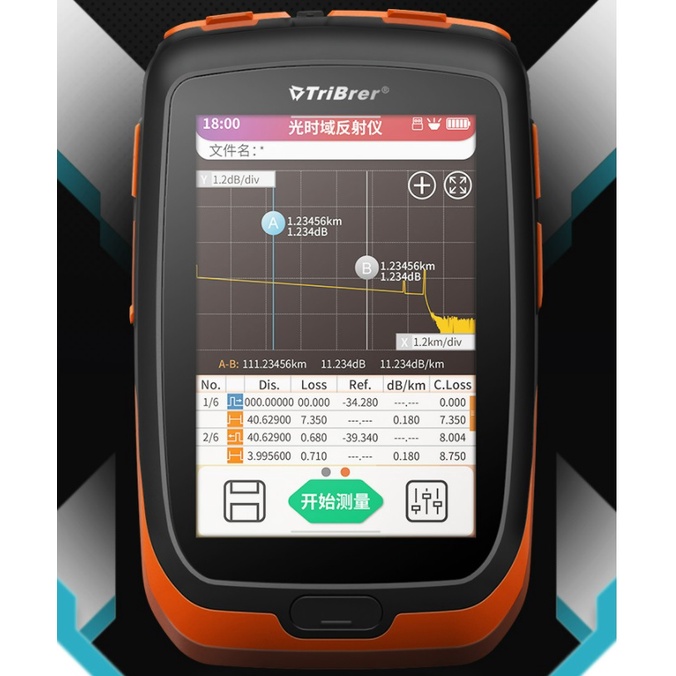 Máy đo AOR100 là máy đo OTDR mới nhất của TriBrer với màn hình cảm ứng rất mượt mà, sản xuất riêng cho thị trường Trung Quốc với nhiều tính năng trong 1 thân hình nhỏ gọn. Vì là sản phẩm nội địa nên chỉ có ngôn ngữ Trung Quốc, nhưng việc sử dụng rất đơn giản.Máy đo xác định chính xác điểm đứt quang, suy hao quang trong phạm vi 80KM, đồng thời có thể đo công suất quang, soi đèn VFL xác định điểm lỗi. Máy có dung lượng Pin lên đến 2000mAh cho thời gian sử dụng lâu dài. Tổng quan đây là 1 thiết bị rất cần thiết và hữu dụng trong việc xử lí sự cố mạng viễn thông.