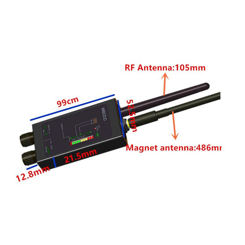 Máy dò đa chức năng chống gián điệp M8000 có thiết kế tương đối gọn nhẹ và sang trọng với chất liệu hợp kim nhôm đen nhám sang trọng. Thiết bị này sở hữu khả năng dò tìm mạnh mẽ để phát hiện ra các máy định vị, nghe lén, camera quay lén. Đây cũng là loại máy dò hiếm hoi được trang bị đầu dò từ tính và mắt laser để gia tăng khả năng dò tìm.Tần số phát hiện tín hiệu rộng