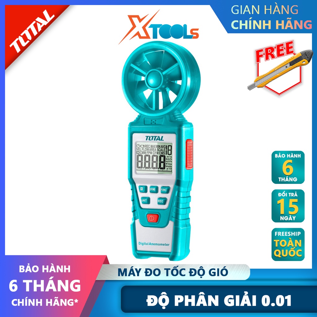 Máy đo tốc độ gió kỹ thuật số TOTAL TETAN01 là một công cụ theo dõi thời tiết được sử dụng để đo tốc độ gió. Máy đo gió có thể được chia thành hai nhóm: máy đo tốc độ của gió và máy đo áp suất của gió; tuy nhiên do có một liên hệ chặt chẽ giữa áp suất và tốc độ, nên một máy đo gió được thiết kế cung cấp thông tin về cả hai.