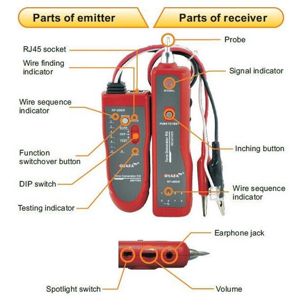 - Dùng để dò tín hiệu dây mạng hoặc dây thoại