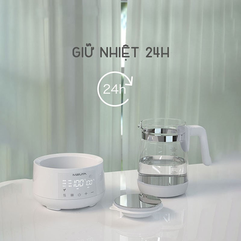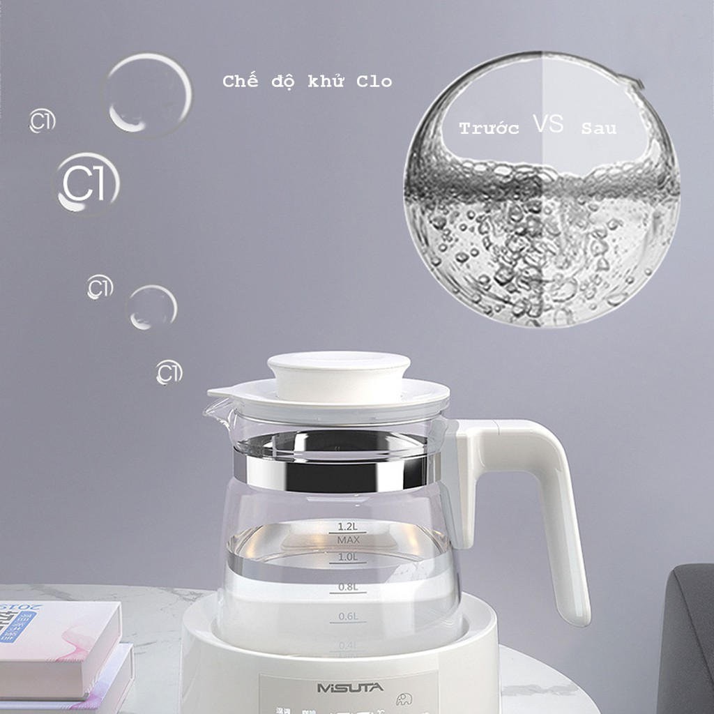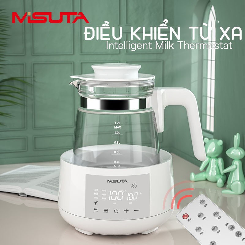 Máy đun sôi hâm nước pha sữa Misuta thông minh MST1200ml [Khử Clo, sôi siêu tốc, giữ nhiệt 24h, điều khiển từ xa]