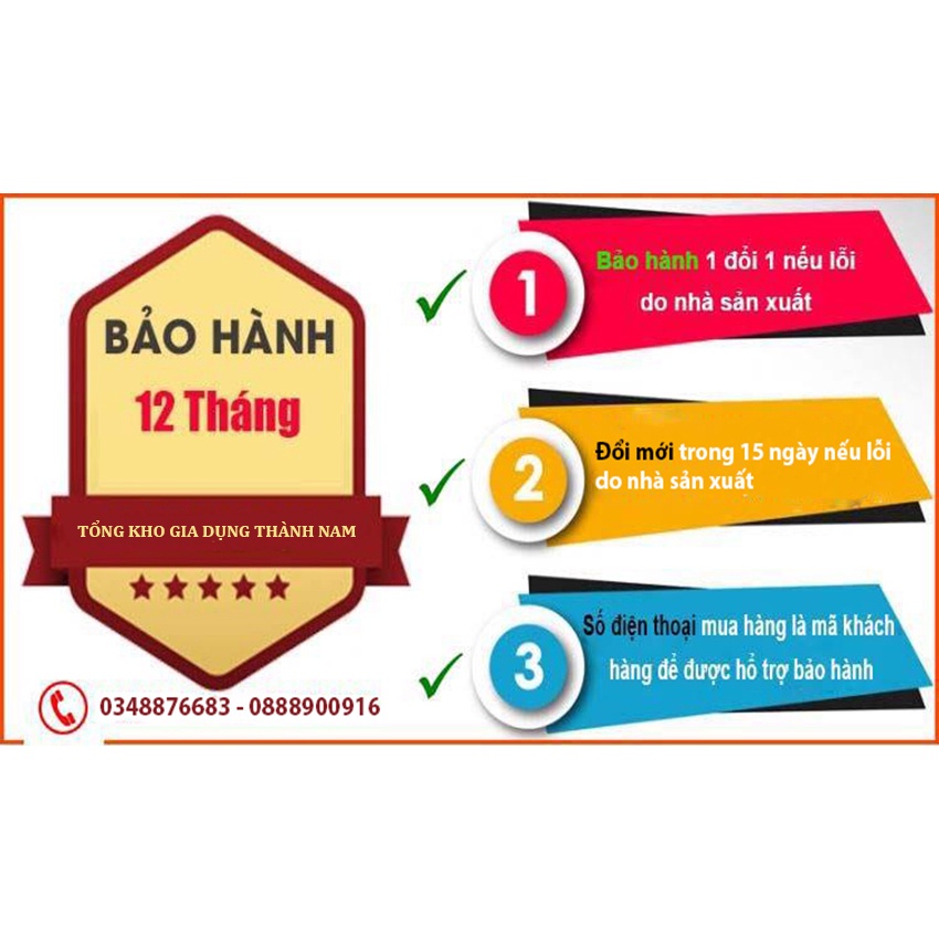 - Bảo hành sản phẩm 12 tháng trên toàn quốc.