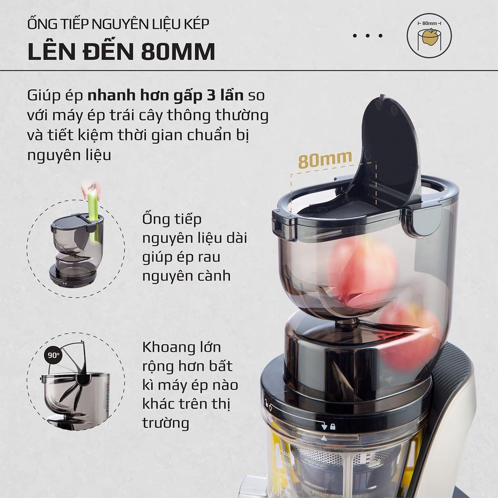 👉Ép nhanh hơn gấp 3 lần, tiết kiệm thời gian chuẩn bị nguyên liệu