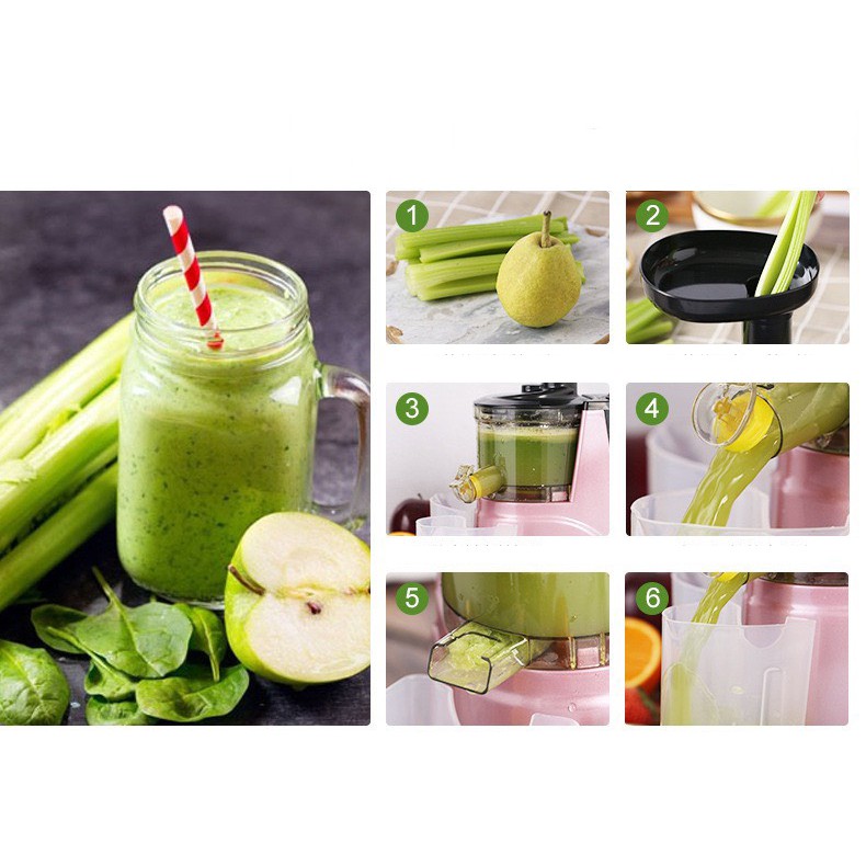 - Máy ép chậm sẽ loại bỏ được tình trạng tách nước sau khi ép, không như máy ép thông thường. Công nghệ ép trục vít giữ được 90% vitamin, chất dĩnh dưỡng trong thực phẩm.