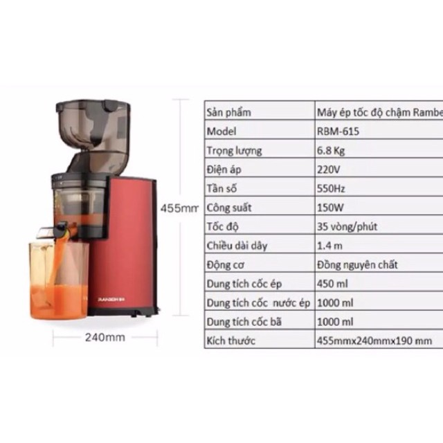 [Mã 44ELSALE2 giảm 7% đơn 300K] Máy ép chậm RANBEM 615 siêu bền - BH 12 tháng tại Hà Nội [LeeHome]