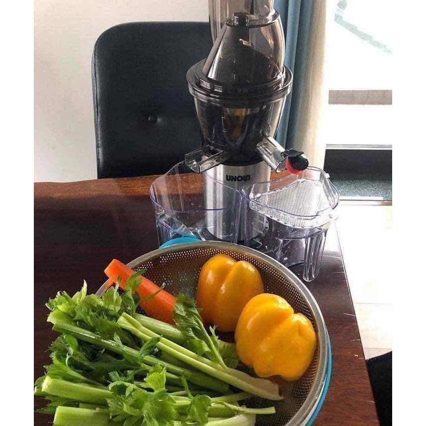 - Nhờ công nghệ mới trục quay từ từ (chậm), trái cây và rau quả sẽ được ép nhẹ nhàng vì vậy mùi vị, vitamin và chất dinh dưỡng được bảo tồn nguyên vẹn hơn hẳn máy ly tâm truyền thống